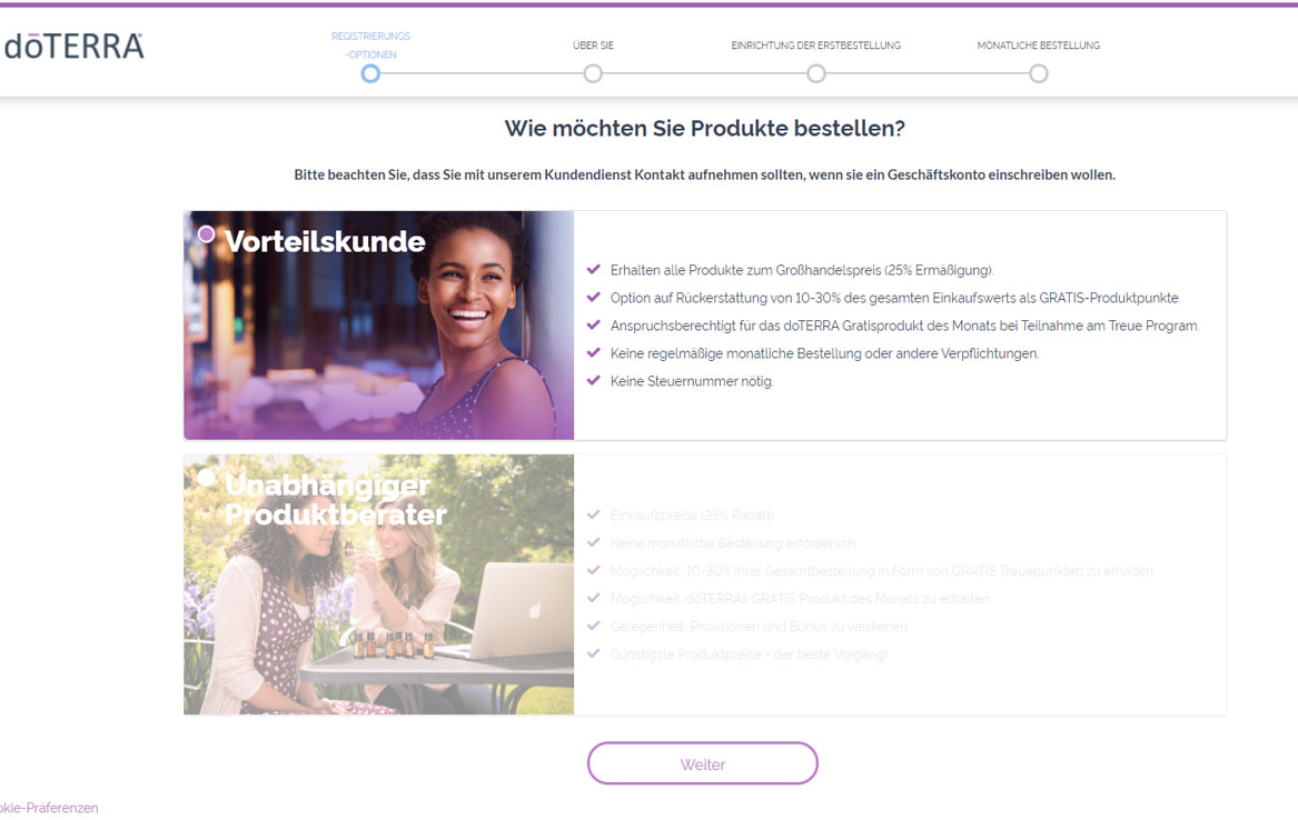 Wähle dann am besten „Vorteilskunde“ aus, so dass du zum Einkaufpreis mit 25% Rabatt die Produkte bestellen kannst.